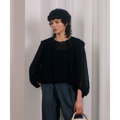 ▼allureville(アルアバイル)シアーショートギャザリングブラウス